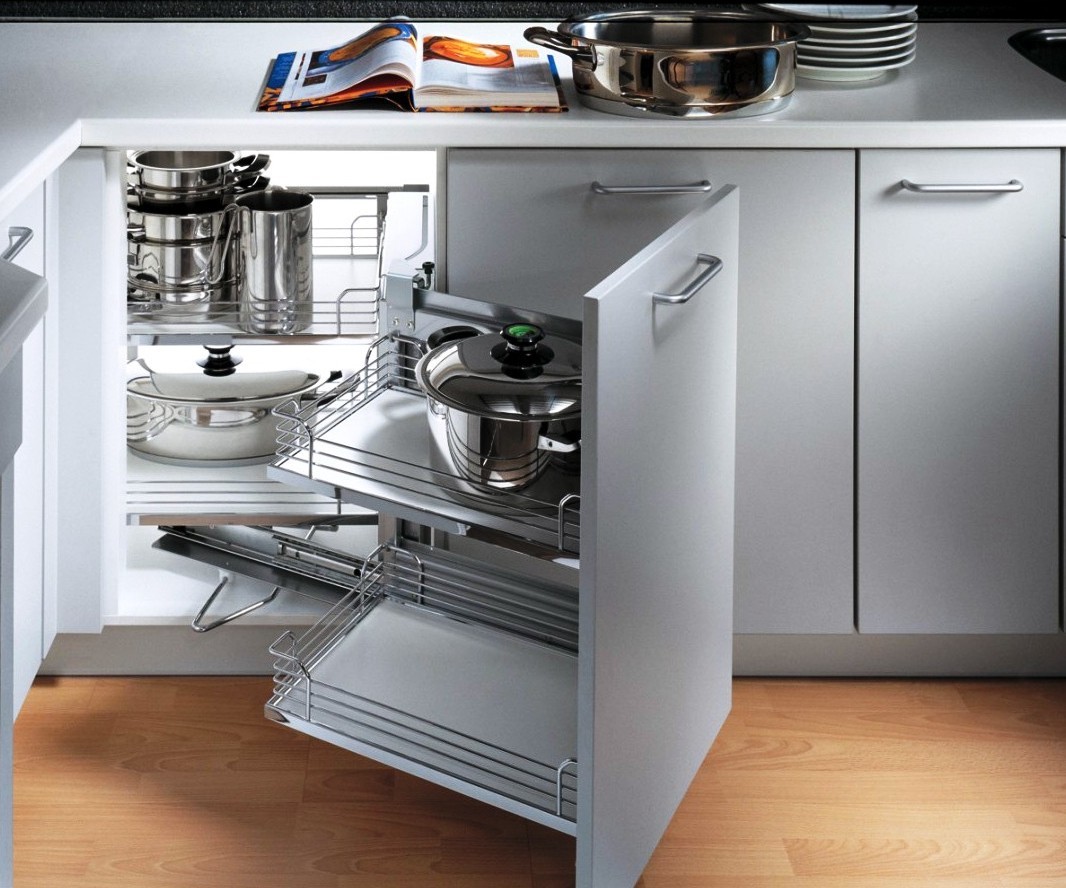 Позволяют по максимуму использовать угловые шкафы и «подают» вещи с дальних полок прямо в руки